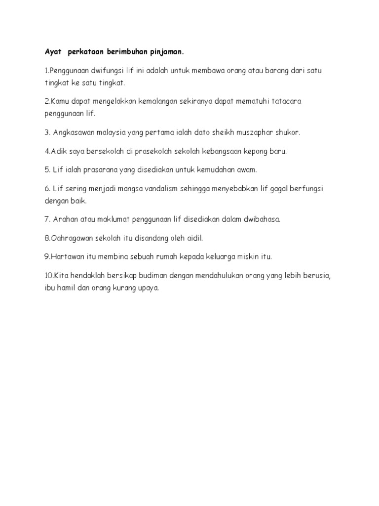 Ayat Perkataan Berimbuhan Pinjaman Pdf